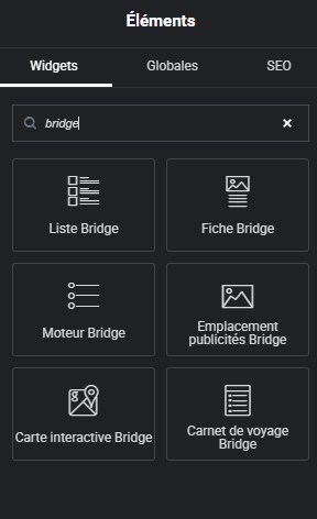 Ajouter un élément et saisissez ‘Bridge’ pour voir les 6 widgets proposés.