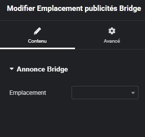 Widget emplacement publicité Bridge