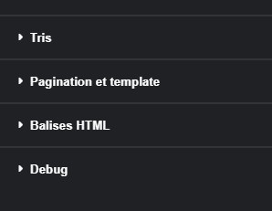 - Pagination et template : pour modifier le nombre de fiches par page et le template visuel (carrousel, liste à droite etc…)